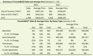 TORONTO, January 17, 2012 – Greater Toronto REALTORS® reported 1,506 sales through the TorontoMLS® system during the first two weeks of January 2012. This result represented a six per cent increase compared to the first 14 days of January 2011. New listings were also up on a year-over-year basis, but by a lesser 3.7 per cent.