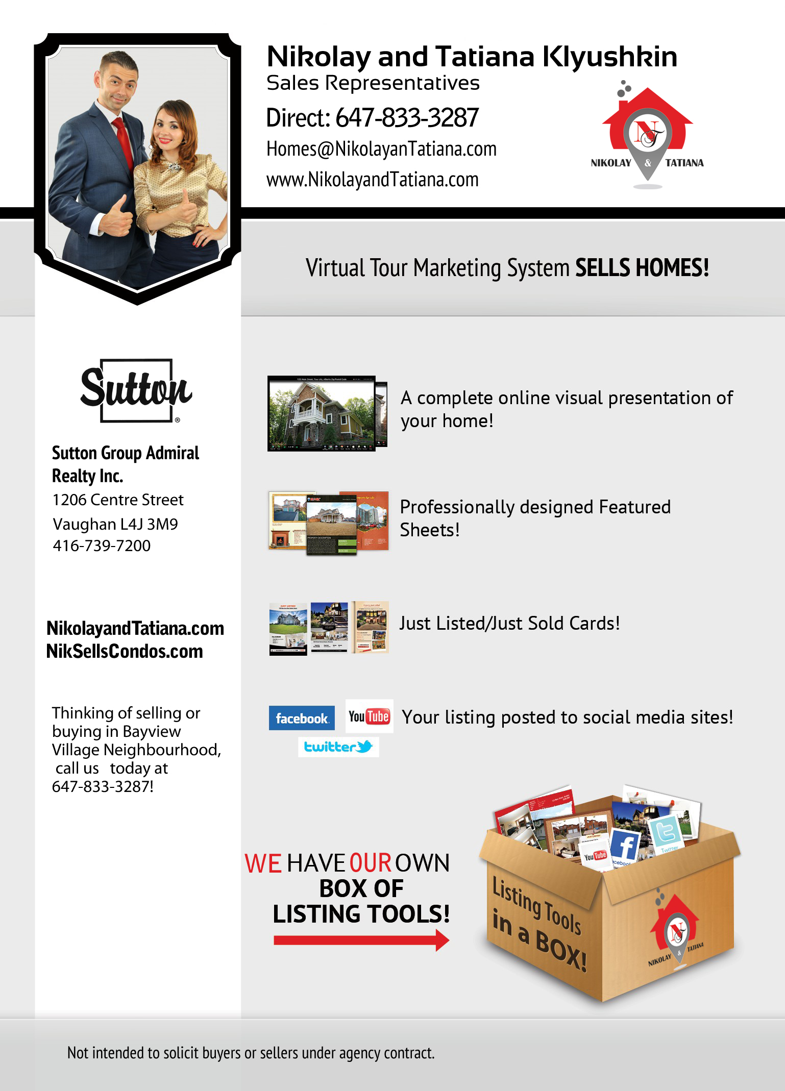 Thinking of Selling Buying or Investing in Toronto Real Estate Market, be it a small condominium or a luxury freehold home, don’t hesitate to call Nikolay and Tatiana at 647-833-3287. We don’t Just Sell We Care!