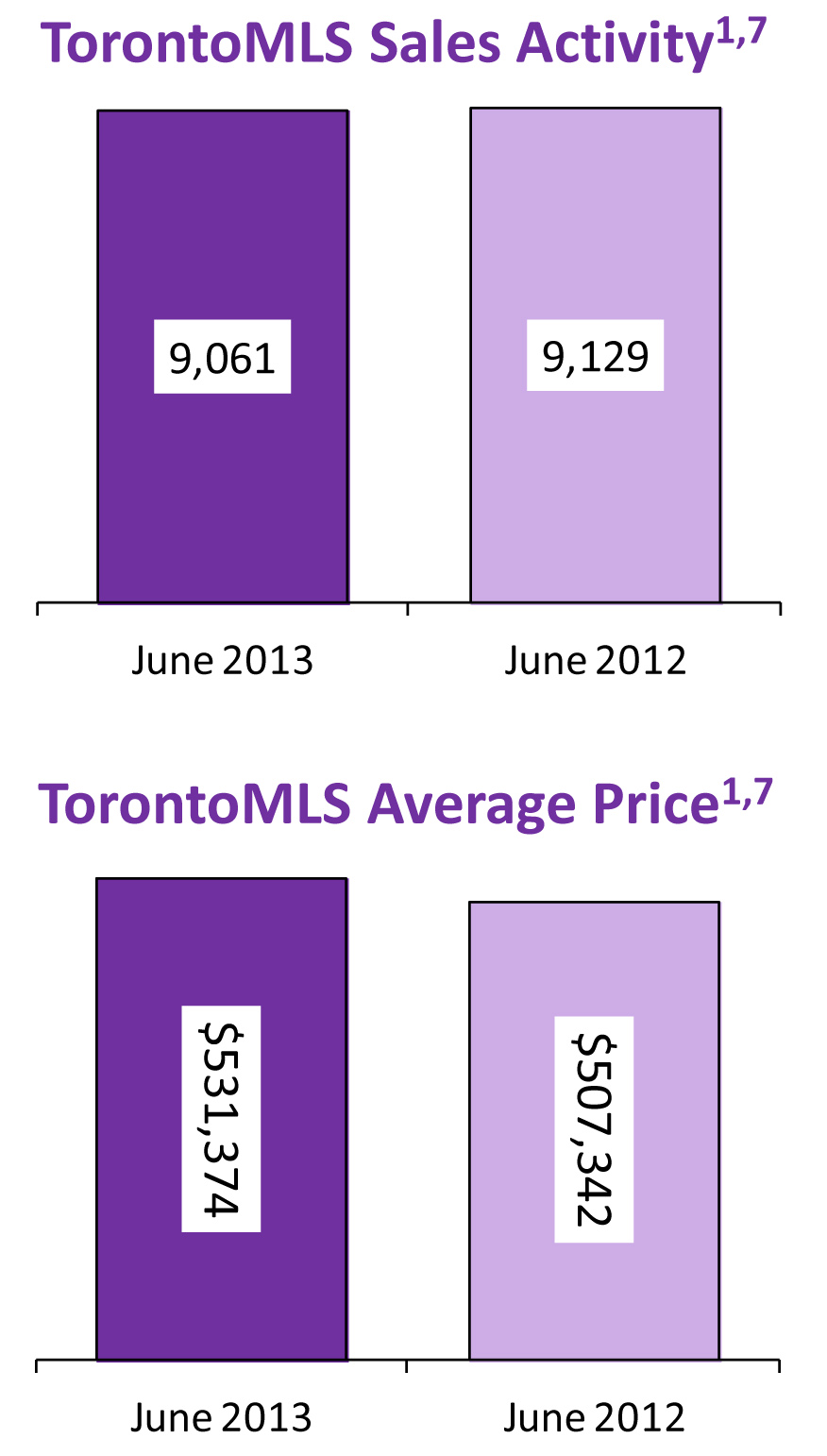 through the TorontoMLS system in June 2013 – down by less than one per cent