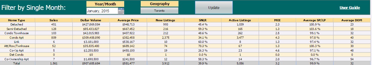 Toronto Real Estate Board announced a strong start to 2015, with robust year-over-year sales and average price growth in January.